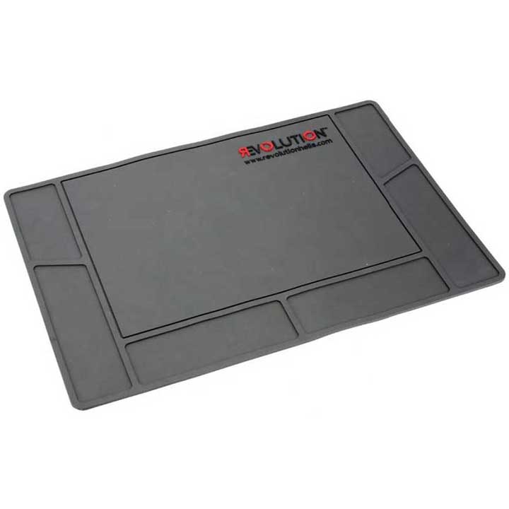This RC Magnetic Pit custom Mat is molded from a flexible durable food grade PVC plastic material. With a main work area and some individual cavities that can be used to sort and organize hardware and other parts.